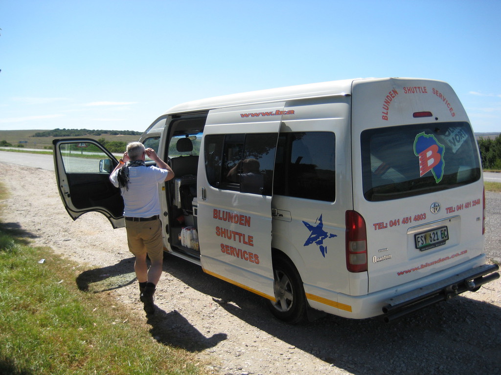 Die Reise startet am Heimat-Flughafen (FMO) und geht dann über München oder Frankfurt nach Johannesburg. Der Langstrecken-Flug dauert 10 Stunden und geht über Nacht. Da es zudem keine Zeitverschiebung gibt, ist die Reise verhältnismäßig stressfrei. Von Joburg fliegen wir am Morgen noch 90 Min. nach Port Elizabeth (P.E.). Dann geht es 200 km mit dem Bulli weiter. Für die letzten 20 km satteln wir um auf Allrad-Fahrzeuge. Bei der Fahrt durch das Gelände kann man von den Sitzbänken auf den Ladeflächen schon einen ersten Eindruck von der traumhaften Landschaft gewinnen. Für die eigenständige Anreise gibt es hier eine Wegbesschreibung von PE zur Farm.