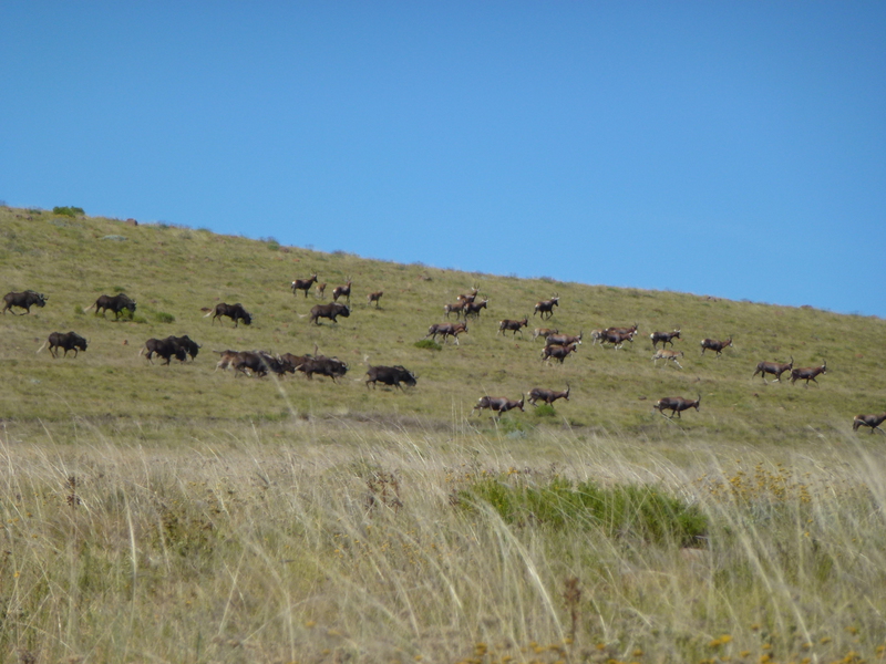 Die Arten-Vielfalt reicht von Kudus, Nyalas und Zebras über Weißschwanz- und Streifengnus zu Hartebeestern und weißen wie braunen Blessböcken. Außerdem haben wir gute Bestände an Impala, Mountain Riedböcken, schwarzen und normalen Springböcken. Wir haben Vaal Rehböcke, Buschböcke, Ducker und auch Damwild im Revier. Außerdem sind Buschschweine und Warzenschweine auf der Farm. Selbstverständlich ist das Raubwild - Schakal, Luchs, Pavian - jederzeit frei gegeben und zwingend zu beschießen.