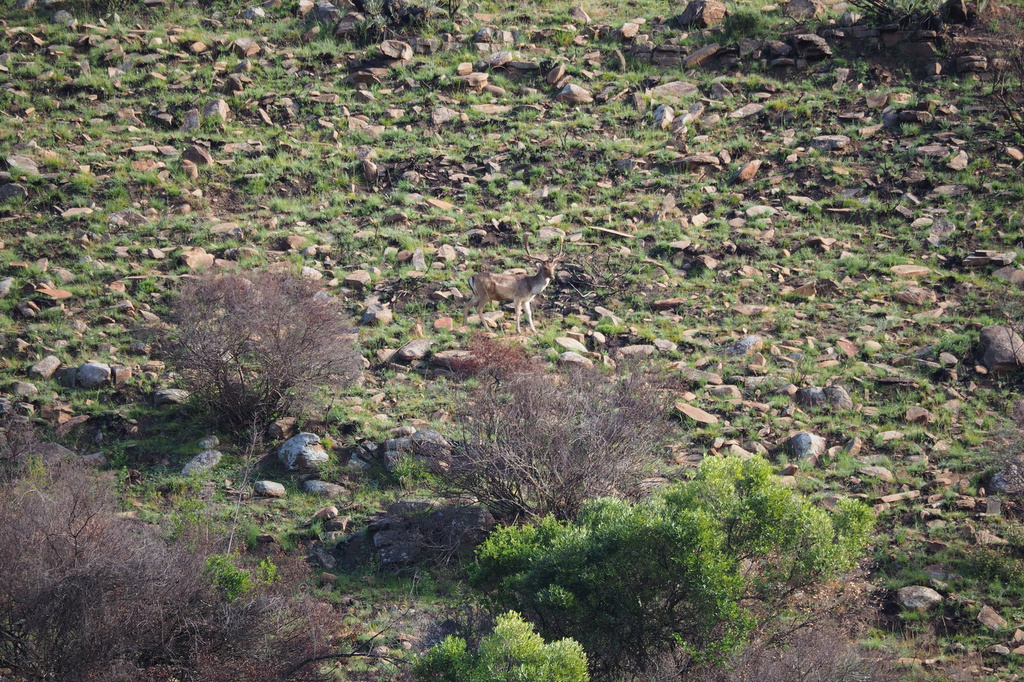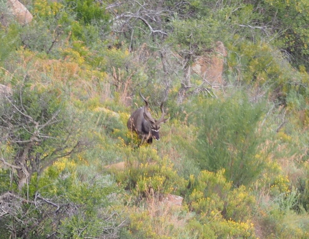 Des weiteren haben wir seit einigen Jahren Wasserböcke in unserem Revier, eine zweite größere Herde zudem als Wechselwild. Elenantilopen kommen auch vor, allerdings ebenfalls nur als Wechselwild. Ganz besonders erfreut uns, dass die Farm seit einigen Jahren wieder im Revier von Leoparden liegt. Wir haben die Tiere gefährtet und mit Wildkameras bestätigt. Leider hat noch niemand den Leo auf der Farm gesehen. Gelegentlich kann man nachts seine Anwesenheit hören, wenn er auf Pavianjagd geht. Bei der Jagd auf sein Leibgericht versetzt er die ganze Gruppe in Panik, die mit lautem Getöse versucht, den Eindringling zu vertreiben. Bei der Pavianjagd wünschen wir dem Leopard allzeit Waidmann´s heil.