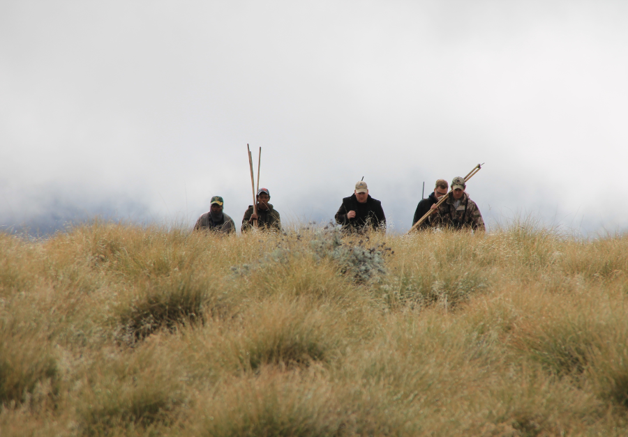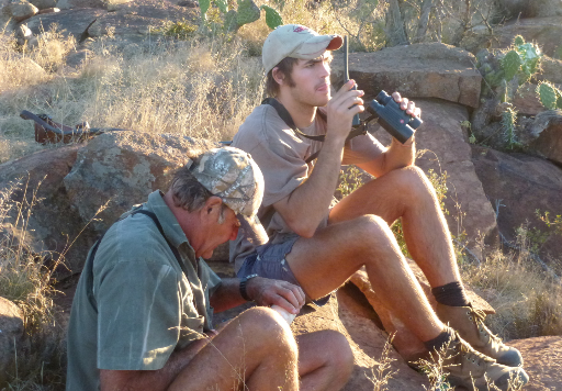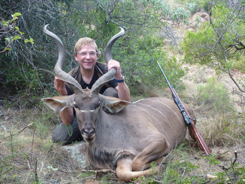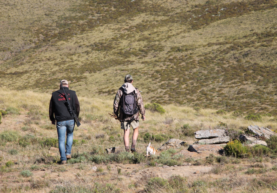 Die Jagd in Südafrika unterscheidet sich von der klassischen Ansitzjagd, die in Deutschland überwiegt. Zusammen mit einem professionellen Jäger (PH) fährt man auf dem Geländewagen über die Farm. Wenn Wild gesehen oder vermutet wird, gilt es schnell einen Plan zu schmieden und es geht auf die Pirsch. Gerade auf den freien Flächen, wo es keine Deckung gibt, wird unter Umständen auf weite Entfernungen geschossen. Die durchschnittliche Schussentfernung liegt bei 250 Metern. In Einzelfällen wird auch über 300 Meter weit geschossen. Die Waffe sollte auf mindestens 150 (besser: 200) Meter eingeschossen sein. Das Wort "Pirsch" liest sich relativ einfach, es kann allerdings bedeuten, dass man mit den drahtigen PH 10 km und mehr zurücklegt, um - zum Beispiel - einem Kudu auf der Fährte zu bleiben. Flache Strecken sind dabei die Ausnahme, im Regelfall geht es bergauf oder bergab durch das Gelände. Eine gewisse Fitness ist also erforderlich um zum Jagderfolg zu kommen.
