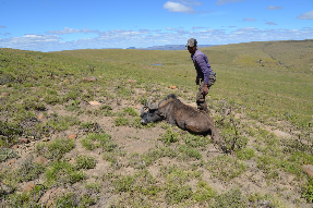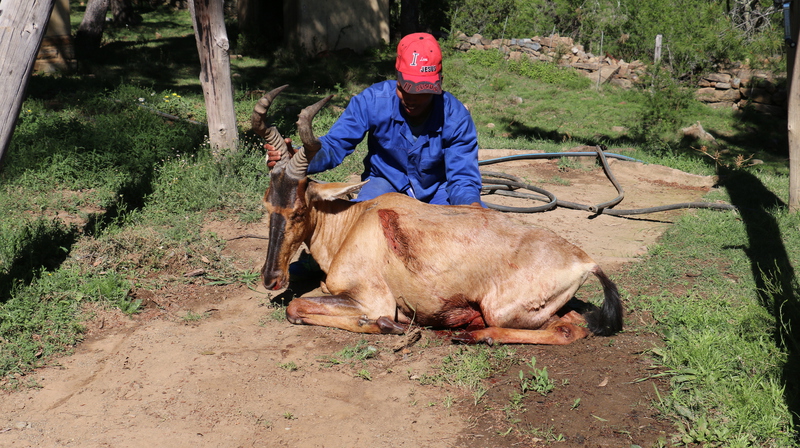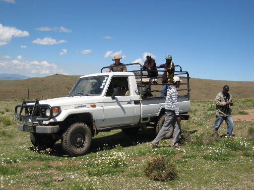 Die Farm ist circa 5000 Hektar groß und kann komplett bejagt werden. Diese Fläche ist umzäunt mit einem ein Meter hohen Zaun, der das Vieh hindert, die Farm zu verlassen. Das Wild überspringt diesen Zaun mühelos und nutzt zudem die unzähligen Löcher. Ausgewachsene Kudus springen sogar aus dem Stand über zwei Meter. Unsere Viehzäune werden auch von den kleineren Antilopen übersprungen. Es gibt in Südafrika auch gezäunte Jagdfarmen. Dafür ist eine Umzäunung von gut zwei Metern erforderlich. Dann spricht man von einem sicheren Wildzaun im Gegensatz zu unserem Wild durchlässigen Viehzaun, der uns bedeutend besser gefällt.