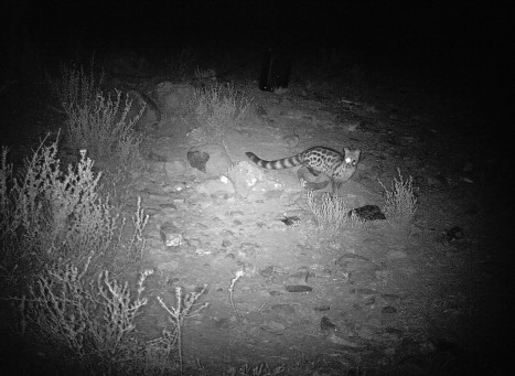 Einen ganz seltenen "Fang" hat unsere Wildkamera im August 2019 gemacht. Es ist eine der unbekannteren Raubkatzen: Der Serval. Diese Tiere sind im südlichen Afrika durchaus verbreitet und gehen zumeist in der Nacht auf die Jagd nach Beutetieren. Servale werden 10 bis 15 kg schwer und sind damit etwas größer als Luchse.