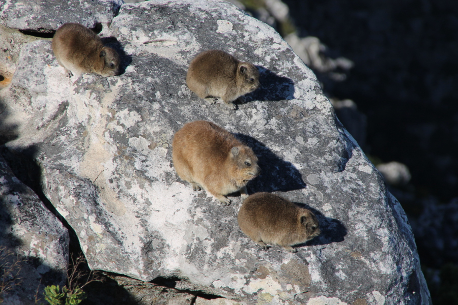 Regelmäßig sehen wir Fischotter und auch Klippdachse. Die Otter leben auf der Farm in den kleineren Seen und Flüssen, obwohl in ganz trockenen Jahren die Seen austrocken und nur kleine Bachläufe verbleiben. Diese Wasserreserven scheinen Ihnen als Lebensraum zu reichen, denn die Fährten finden wir häufig. Die Klippdachse, Nagetiere von der Größe eines Kaninchens, leben in Höhlen und lieben das Sonnenbaden auf den Felsen. Daher ihr englischer Name "rockrabbit". Sie sind überraschenderweise genetisch mit Elefanten verwandt. Wer schon einmal den Tafelberg in Kapstadt besucht hat, wird diese netten Tiere sicher kennen. Dort sind sie auch vertraut genug um sich fotografieren zu lassen.