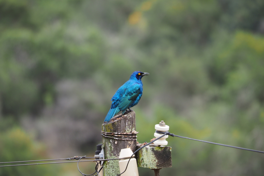 Den Grünschwanzglanzstar, der in der Sonne knallblau leuchtet, sieht man von allen Singvögeln am häufigsten auf der Farm. Er ist zudem der geduldigste seiner Zunft. Viele dieser bunten Kameraden sind schneller unterwegs und extrem schwer zu fotografieren.